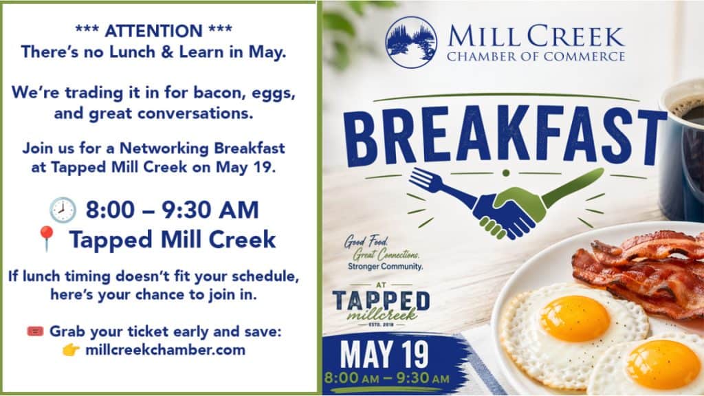 Join us for a Networking Breakfast at Tapped Mill Creek on May 19.