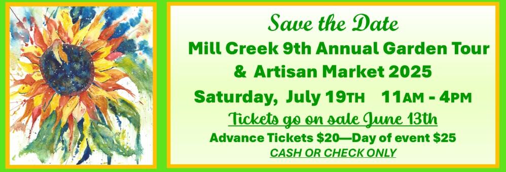 Mill Creek Garden Club is thrilled to present our 9th Annual MILL CREEK GARDEN TOUR & ARTISAN MARKET