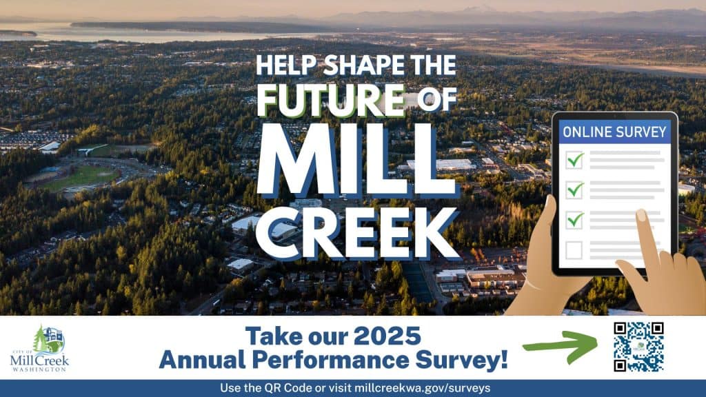 The City of Mill Creek is conducting its annual Spring Performance Survey. The goal of the 2025 survey is to help the City assess the community’s overall satisfaction with safety, City services, events, communications, and more.