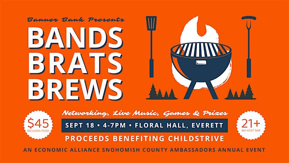Join Economic Alliance Snohomish County’s Ambassador Program for an evening of great food, cold brews, and lively tunes—all in support of a good cause. Presented by Banner BankBands, Brats, Brews is back at the beautiful Floral Hall in Forest Park for a night of connection and community spirit.
