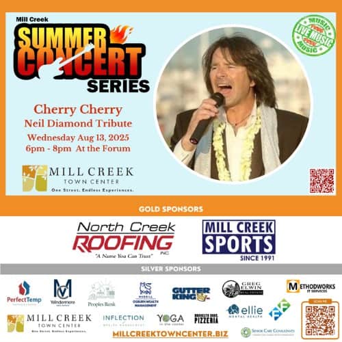 Please consider sponsoring the Mill Creek Summer Concert Series. The success of keeping this entertaining event alive in Mill Creek Town Center depends solely on community and business donations.