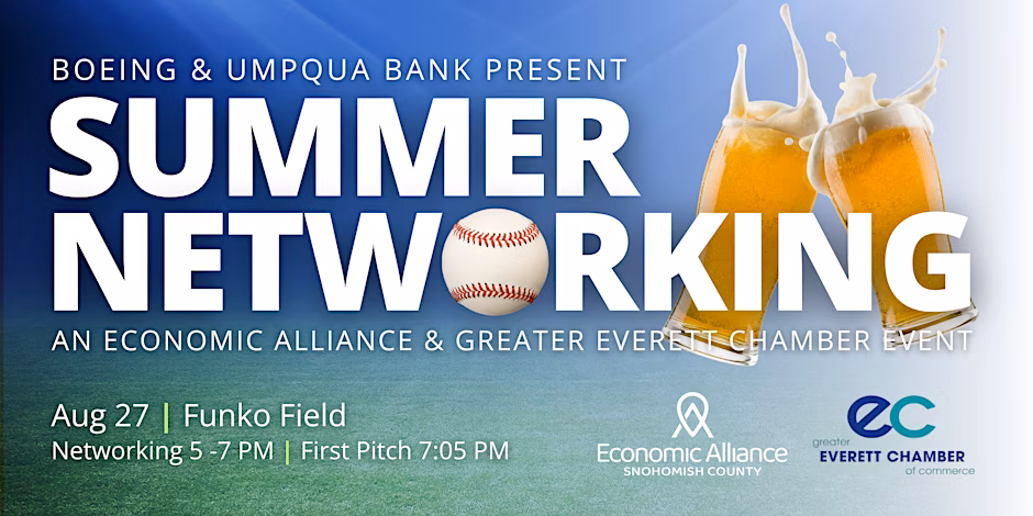Greater Everett Chamber is teaming up with Economic Alliance Snohomish County for the ultimate summer networking night—presented by Umpqua Bank and The Boeing Company.