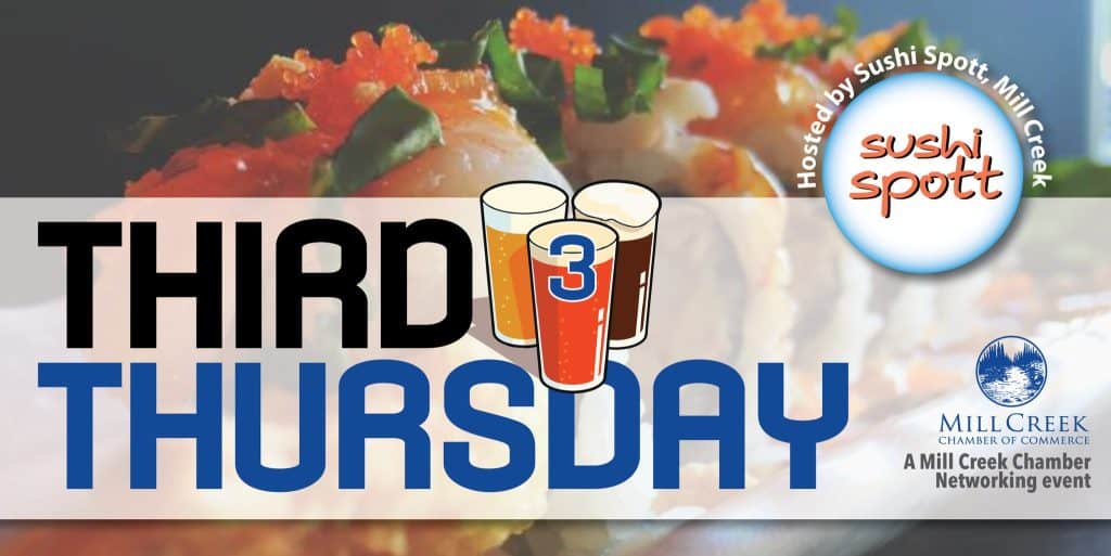 Another exciting Mill Creek Chamber event; we’ll hold these each “Third Thursday” each month at different locations.