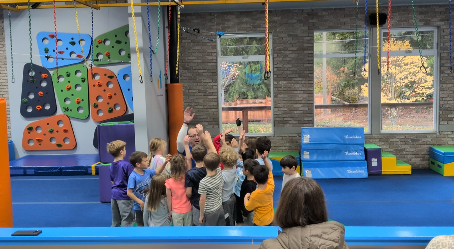 At Tumbles Mill Creek, it’s our mission to shape the minds and bodies of the future through non-competitive kids gym programs that help kids get active, build confidence, and interact with their peers in a fun, supportive, and impeccably clean environment. Tumbles programs are based on developmental milestones and designed to help fight childhood obesity and position kids for healthier, happier lives from an early age.