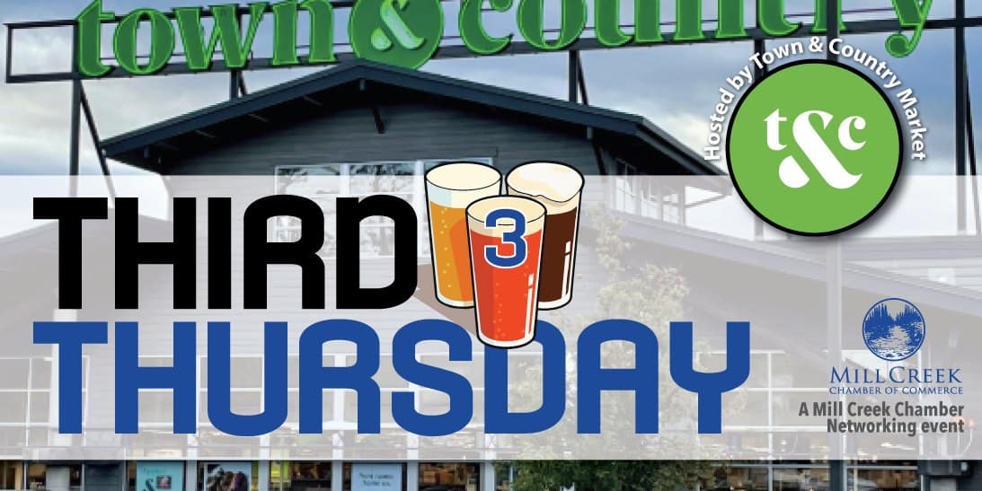 October's Third Thursday Event will be at Town & Country Market Mill Creek Address: 5605 Main St, Mill Creek, WA 98012 Please join your fellow Mill Creek Chamber members and guests to our monthly member-hosted evening event where businesses get to network, learn about each other, and connect on a personal and casual level! Guests…